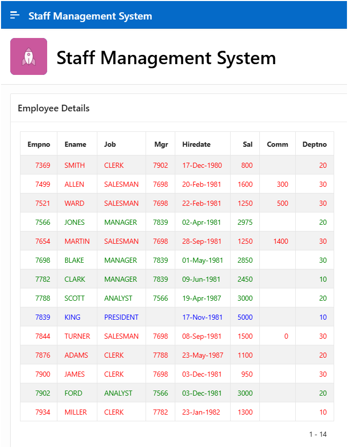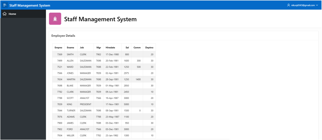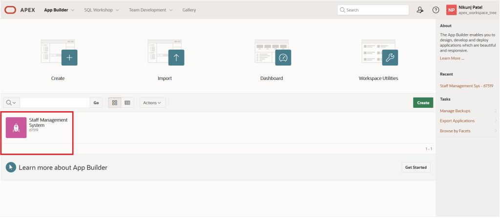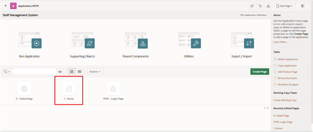First, select the web application in which you want to create an Oracle APEX Classic Report. In our case, we have chosen the Staff Management System application.