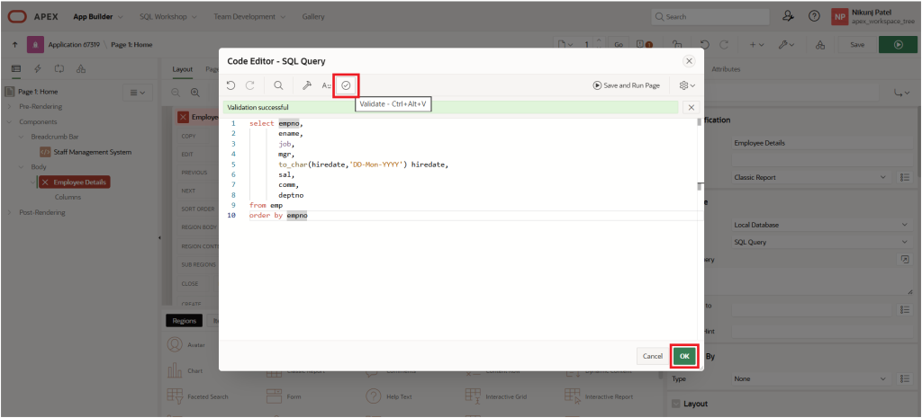 Validate the above query in the Code Editor – SQL Query pop-up region.